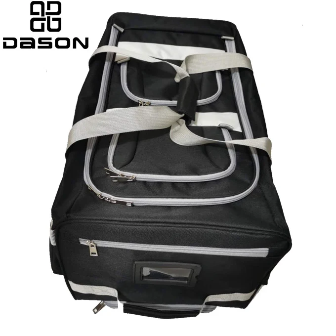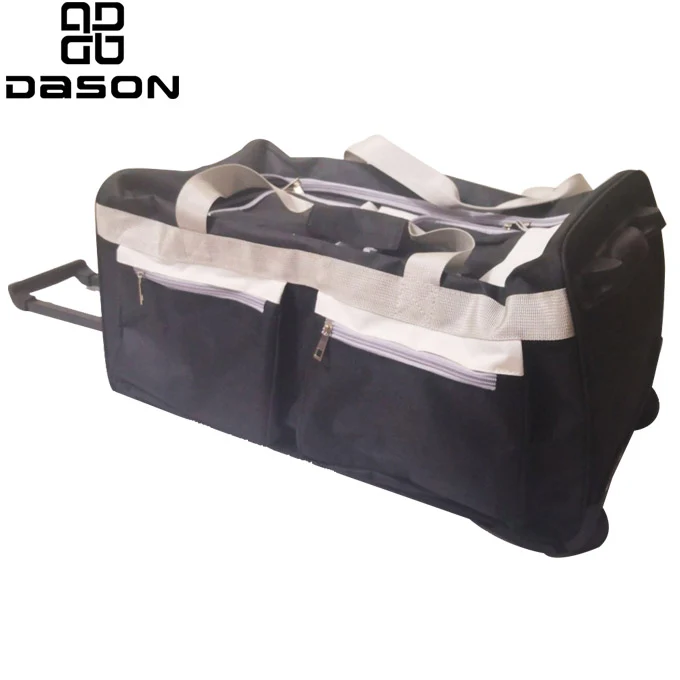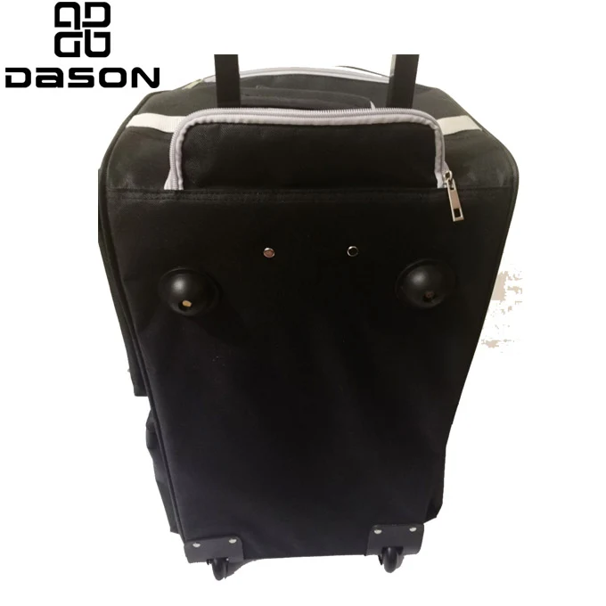 210Д полиестер са пуним поставом за ову торбицу за пртљаг на точковима, направљен од чврсте тканине отпорне на хабање 600*600Д, са великим глатким металним патентним затварачима