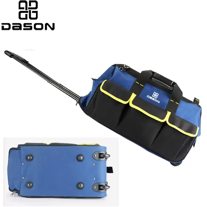 Торба за алат на точковима је дизајнирана да задовољи ваше потребе за складиштењем и коришћењем алата и омогућава вам да лако однесете свој алат тамо где треба. Направљен је од најлонског материјала високе чврстоће за издржљивост и отпорност на воду, одржавајући алат сувим и безбедним током транспорта. Торба за алат на точковима има слојевит дизајн и вишеструке уторе који могу да приме разне алате и додатке, као што су одвијачи, кључеви, бушилице, клешта и различити конектори и састојци. Његов дизајн са точковима и телескопском ручком може се лако транспортовати и померати, што значајно побољшава удобност и ефикасност употребе.